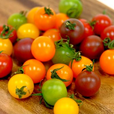 その一方でオレンジ色が鮮やかでリコピンだけでなくβカロ テンなどの栄養素も含まれる食味の優れたオレンジ千果の二種類のミニトマトをあわせて100個以上も贅 沢に使い、かつ 食品添加物は無添加という体に優しい一品です。